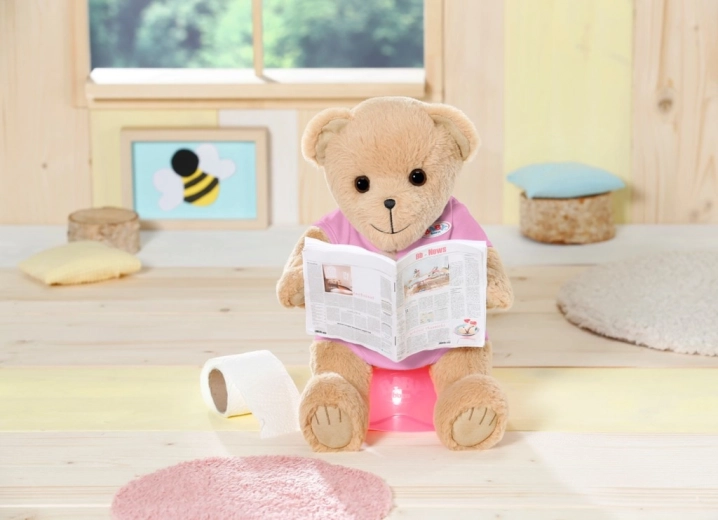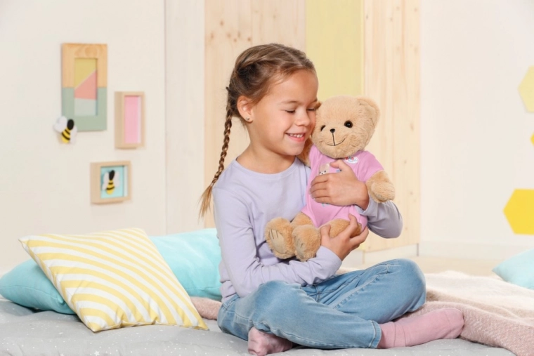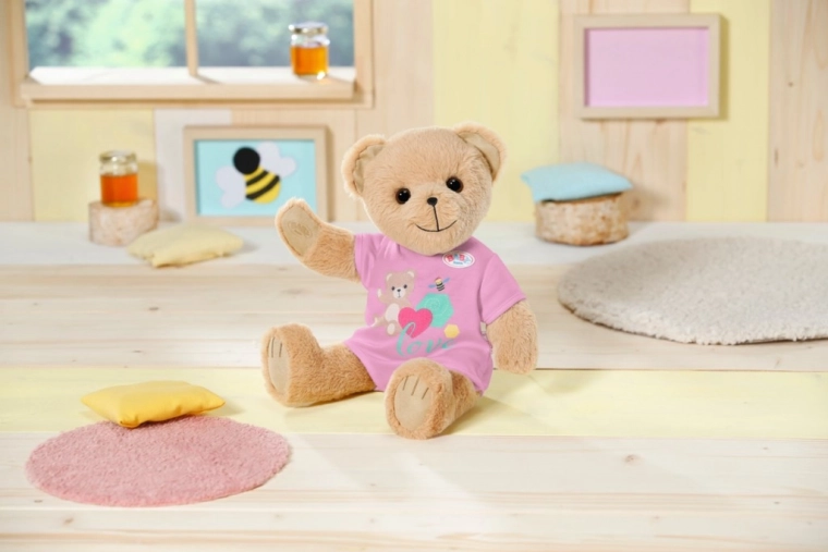 Medvedek BABY born s sladkim nasmehom je mehak, nežen in pripravljen postati najboljši prijatelj. Zaradi združljivosti z oblačili za BABY born 43 cm se zlahka uskladi s punčkami in razširi možnosti igre. Njegov rožnati outfit mu pristaja, prav tako pa z veseljem preizkusi nove kombinacije.