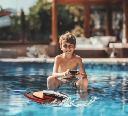 - Vožnja v vse smeri – natančno manevriranje v bazenu in ribniku.