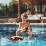Lahek, vzdržljiv in enostaven za upravljanje RC čoln z dometom 10–15 m in časom vožnje 8–12 minut na eno polnjenje.