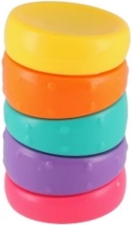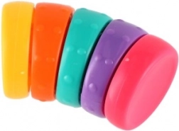 Predstavljamo mavrični antistresni obroček – majhen stolp s 5 ukrivljenimi barvnimi obroči, ki se popolno prilegajo drug drugemu. Vsak obroč ima raznolike teksture in oblike, ki dodatno spodbujajo fino motoriko in kreativnost.