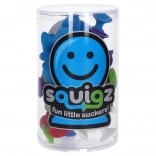 Fat Brain zabavne priseske Squigz začetni paket. Pakiranje vsebuje 22 kosov priseskov različnih barv, vrst in velikosti. Velikost enega kosa je približno 6 cm v premeru.
