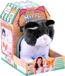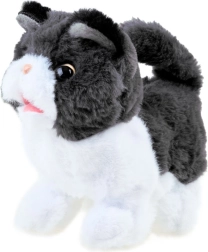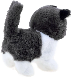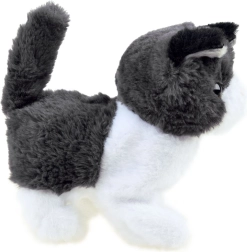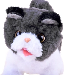 Interaktivni muc je narejen iz mehkega plišastega materiala z plastičnimi očmi in nosom, kar mu daje resnično realističen videz.