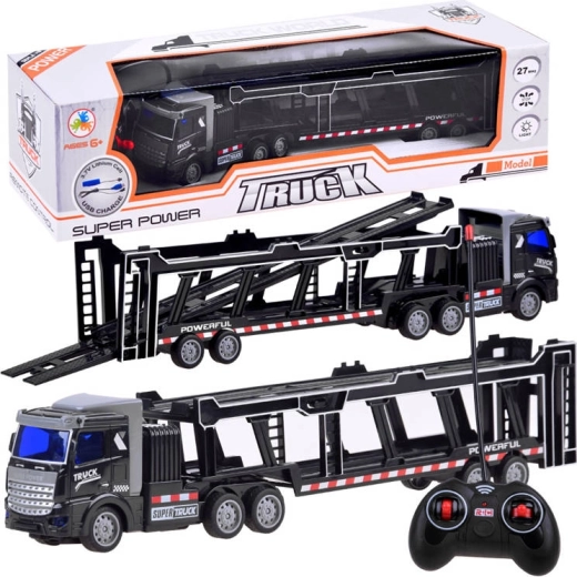 Prikolica je popolnoma odstranljiva in vsebuje gibljive elemente, kot so odpirajoča se zadnja vrata in preklopna zgornja paluba, kar omogoča prevoz drugih igrač. Daljinsko upravljanje, ki deluje pri 27 MHz, zagotavlja popoln nadzor nad gibi tovornjaka – naprej, nazaj, levo in desno.