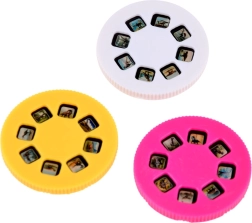Vsebuje tri barvne plastične plošče z več slikami, ki jih je enostavno menjati za različno projiciranje.