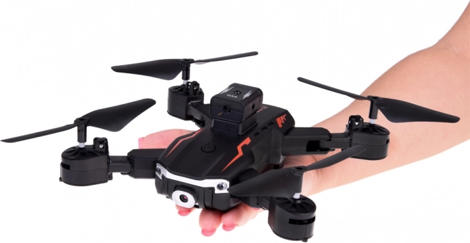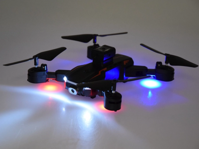 Daljinsko voden dron je priljubljen med navdušenci nad letečimi igračami. Ta model je izdelan iz lahke in trpežne plastike in tehta le 120 g, kar zagotavlja odlično okretnost in hitrost. Zasnova drona je skrbno oblikovana za stabilnost med letom ter povečano odpornost proti padcem in prisilnim pristankom. Z vgrajeno LED osvetlitvijo in sodobnim dizajnom spominja na profesionalno opremo.