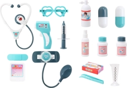 Set vsebuje bogato izbiro zdravniških pripomočkov, ki otrokom omogočajo uprizarjanje različnih zdravstvenih scenarijev. Del seta je stetoskop s svetlobnimi in zvočnimi efekti, ki realistično reproducira značilne zvoke tega pripomočka, zato je igra še bolj pristna in napeta.