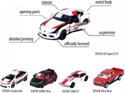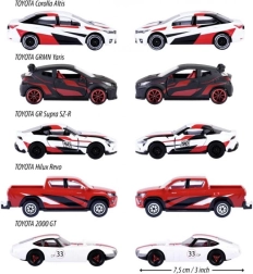 Ta darilni set bo razveselil vsakega oboževalca motošporta in znamke TOYOTA. V paketu najdete pet legendarnih modelov – GR Supra, GRMN Yaris, Hilux Revo, Corolla Altis in 2000 GT – v enotnem dirkaškem slogu. Kovinske karoserije, podrobni potiski in funkcionalni odpirajoči se elementi avtomobilčkom dajejo realističen videz.