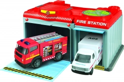 Ta prenosna postaja je idealna za otroško domišljijo in akcijske scenarije. Kompaktne mere omogočajo enostavno prenašanje in shranjevanje, medtem ko dve podrobno izdelani vozili v dolžini približno 13 cm prinašata realistično igralno izkušnjo. Izberite med priljubljenima motivoma gasilci ali policija.