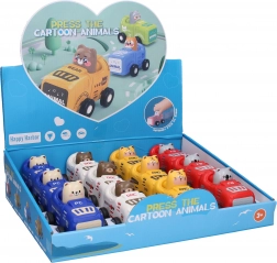 Iščete preprosto in zabavno igračo za najmlajše? Živalica v avtomobilčku je odlična izbira. Zahvaljujoč push-down mehanizmu se avtomobilček po pritisku živalice požene, kar spodbuja otrokovo motoriko in koordinacijo. Kompaktna velikost 9 cm je primerna za majhne roke in nahrbtnik.