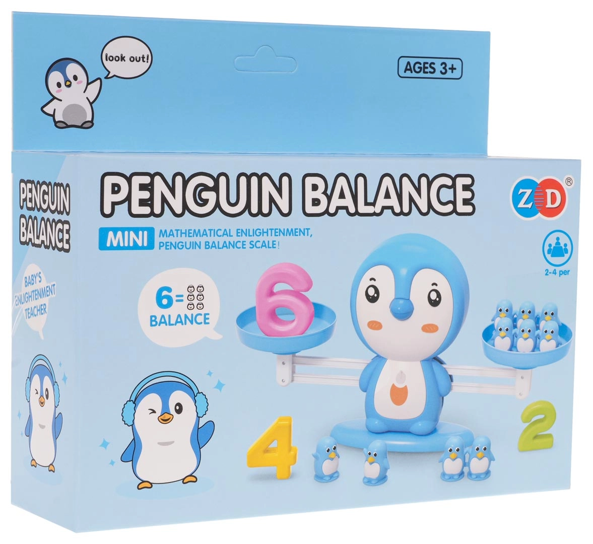 Ta spretnostna in izobraževalna igra otrokom prinaša dolge ure pametne zabave. Naloga je na eno skledo tehtnice polagati številke, na drugo pa pravilno število pingvinčkov, tako da se tehtnica izravna. Otroci si tako na igriv način osvojijo štetje, seštevanje in odštevanje, razvijajo logično razmišljanje, domišljijo in ustvarjalnost ter hkrati spoznavajo principe ravnotežja in mase.