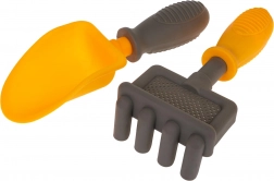 V kompletu boste našli tudi grablje in lopatko. Ta orodja otrokom omogočajo kreativno igro in razvijanje njihovih gradbenih veščin na pesku ali v gramoza.