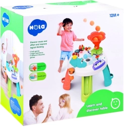 Interaktivna in pisana otroška mizica Hola bo vašemu otroku zagotovila ure zabave in učenja. Mizica je izdelana iz kakovostnih materialov, je varna in stabilna ter spodbuja ustvarjalno igro z veselimi barvami in dizajnom.