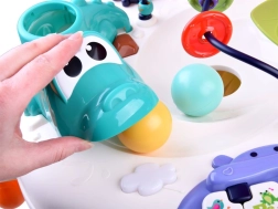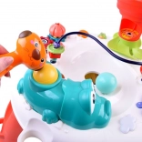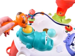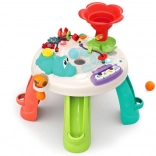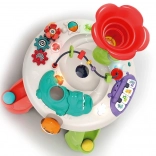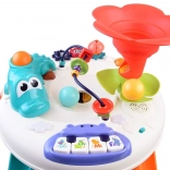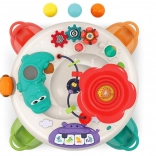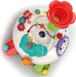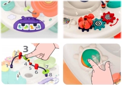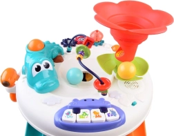 Interaktivna otroška mizica je opremljena z različnimi elementi, ki spodbujajo senzorični in motorični razvoj. S pomočjo zvokov, lučk in gibanja pritegne pozornost otrok ter jih zabava.