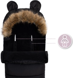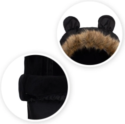 MoMi zimska vreča je preprosta za uporabo – ima zadrgo, ki omogoča enostavno namestitev otroka v spalno vrečo. Ima univerzalne barve, ki se bodo ujemale z ostalimi otroškimi dodatki. Podložena je z umetnim krznom in ima ljubka, dekorativna ušeska, ki izdelku dodajo karakter. Podloga iz umetnega krzna je odstranljiva.