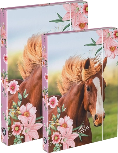 Komplet škatel za zvezke v formatu A4 in A5. Nepogrešljiv pripomoček vsakega šolarja za shranjevanje zvezkov, papirjev in drugih šolskih pripomočkov. Odporen material - laminat, ščiti pred poškodbami. Zapiranje na elastiko.