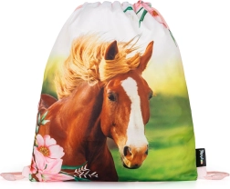 Peresnica z dvema preklopoma ponuja pregledne gumijaste zanke za pisala in prozoren žep za urnik. Vrečka z zateznimi vrvicami je lahka, trpežna in odlična za športno opremo, copate ali prostočasne aktivnosti. Celoten set povezuje privlačen cvetlični motiv s konjem, ki bo otroke navdušil.