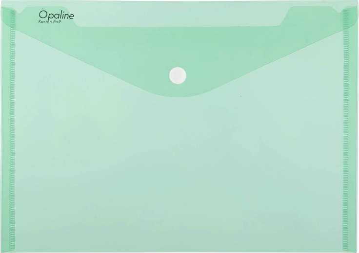 Mapica Opaline ščiti dokumente pred mečkanjem in prahom. Trpežen polipropilen debeline 180 µm dobro drži obliko, zanesljiv gumb pa preprečuje nenamerno odpiranje. Format A4 se udobno prilega v torbo, aktovko in registratorje.