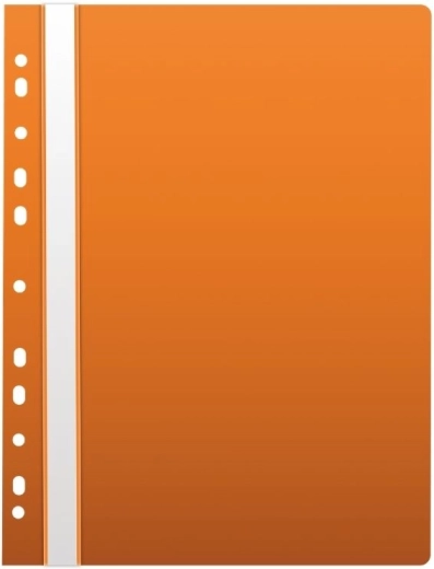 Praktičen hitroveznik A4 z evro-priklopom v oranžni barvi, idealen za urejanje dokumentov v vašem fasciklu.