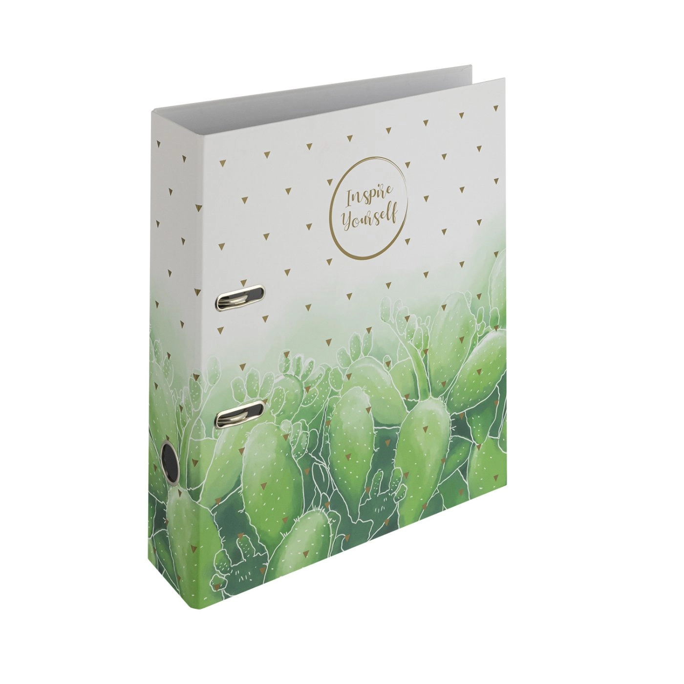Stilska mapa z vzvodnim mehanizmom formata A4 z motivom Romantic Kaktus ponuja širino hrbta 7 cm, izvlečni obroč za enostavno jemanje s police in zapirala proti nenamernemu odpiranju za varno shranjevanje dokumentov.