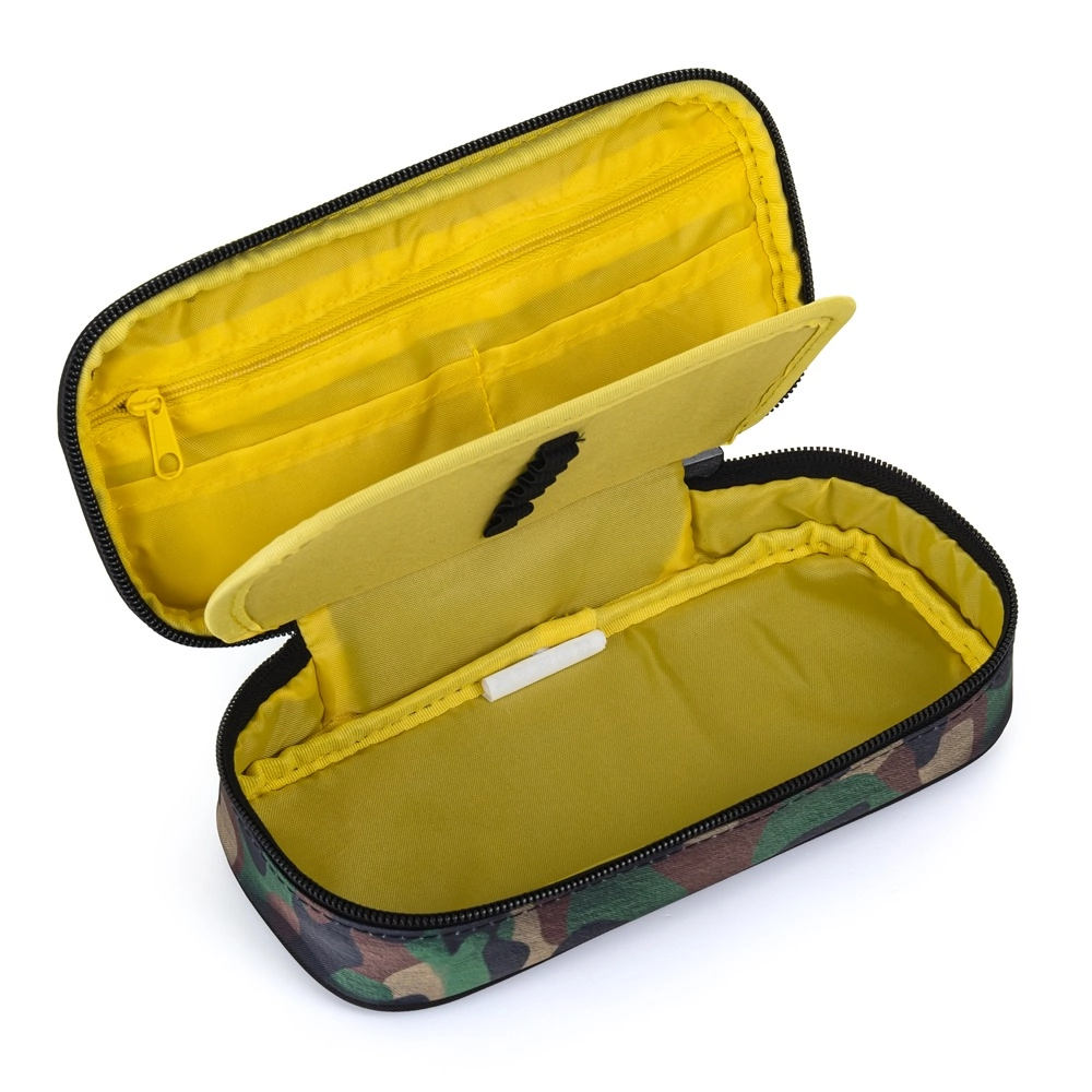 Šolsko etui s trdimi zadrgami, žepkom na zadrgo in preklopom z močnimi držali na obeh straneh. Pod preklopom je prostor za prosto shranjevanje pisal ali drugih drobnarij. Primerno za učence druge triade in starejše dijake.