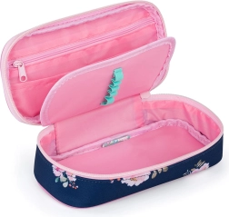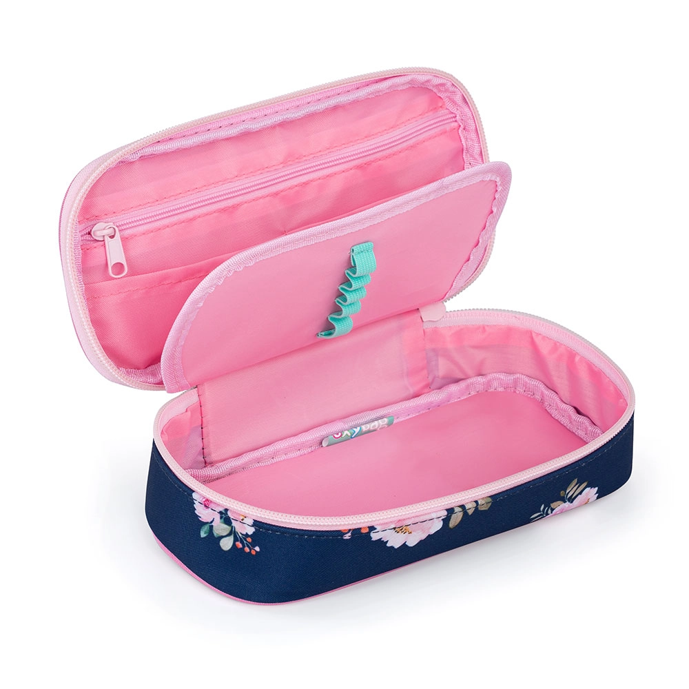 Ta etui je zasnovan za pregledno organizacijo šolskih potrebščin. Trpežna izvedba s trdnimi zadrgami ščiti vsebino, medtem ko preklop z elastičnimi zankami na obeh straneh varno drži kemične svinčnike, svinčnike ali flomastre. Ne manjka niti žepek na zadrgo za drobnarije, pod preklopom pa je prostor za prosto shranjevanje potrebščin, ki jih želite imeti pri roki.