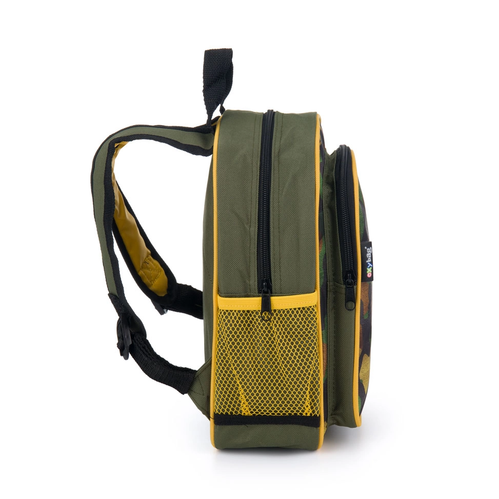 Nahrbtnik ima pregledno razporeditev: veliko glavno komoro za copate ali najljubšo igračo, sprednji žep za malico in elastičen mrežast žep za steklenico. Nastavljive podložene naramnice in zgornja zanka povečujejo udobje in omogočajo enostavno prenašanje.