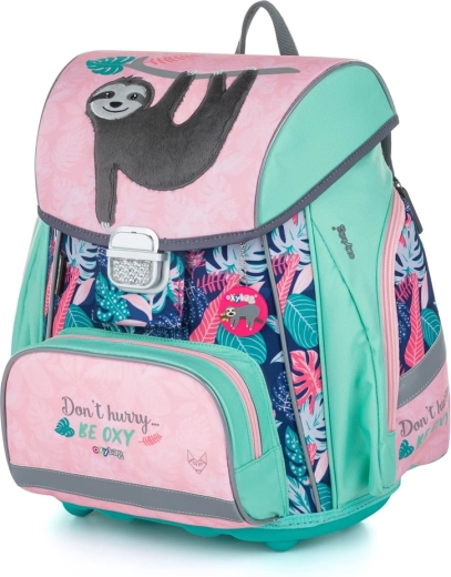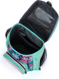 Nahrbtnik ima glavni prostoren predal, ki sprejme vse potrebne pripomočke za prvi in drugi razred. Sprednji žep je primeren za malico. Zapiranje na varnostno zaponko omogoča enostavno odpiranje in zapiranje nahrbtnika.