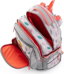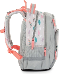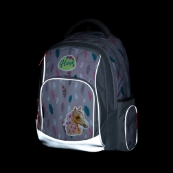 Praktično čvrsto dno ščiti pred umazanijo in neželenim prelitjem vsebine. Nahrbtnik ponuja obilico žepov, zato boste ključe in drobnarije vedno imeli pri roki. Odsevni elementi povečujejo vidnost otrok na poti v šolo in domov.