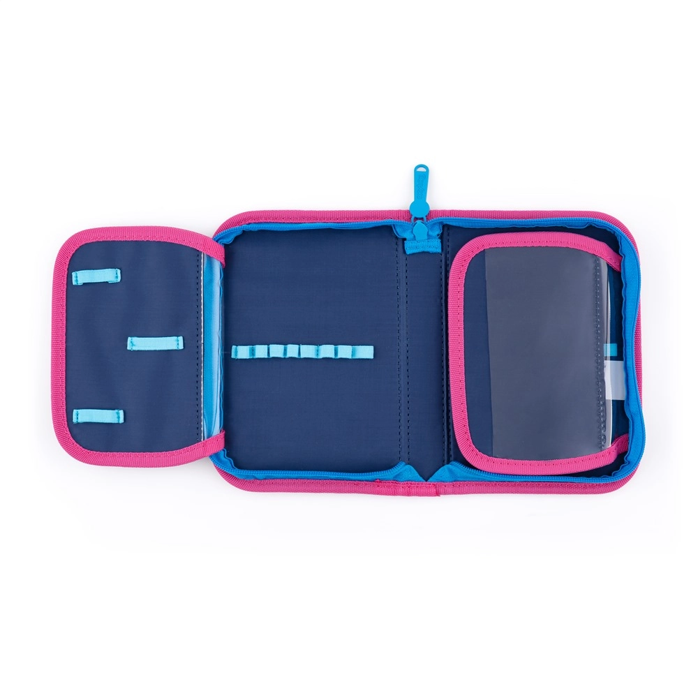 V notranjosti boste našli praktičen prostor za urnik, poštevanko ali zapiske, zato bo šolski dan še bolj organiziran. Peresnica je lahka, kompaktna in se zlahka prilega v šolsko torbo. Pisalne potrebščine niso vključene.