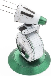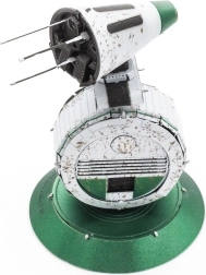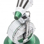 Fine linije in strukture, ustvarjene z laserskim graviranjem, dajejo modelu globino in realističen videz. Sestavljen droid izgleda kot majhen filmski rekvizit.