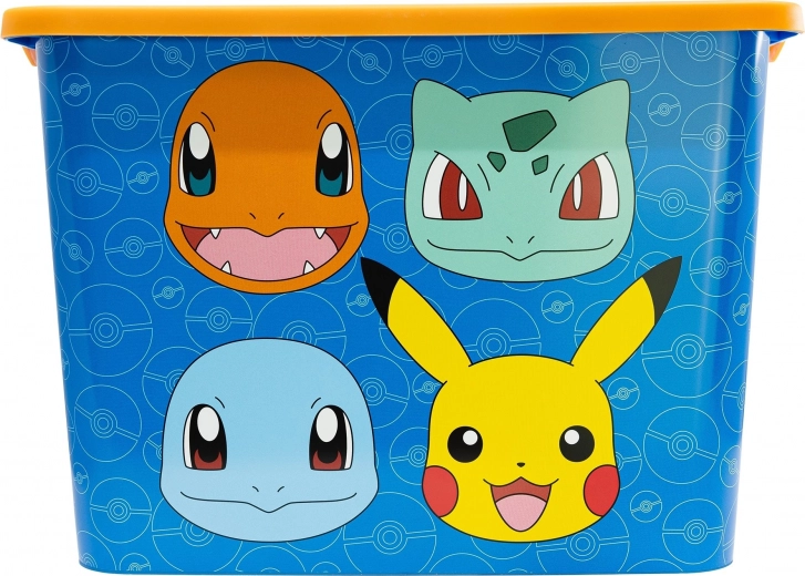 Plastična shranjevalna škatla POKÉMON 23 l z odstranljivim pokrovom. Zapirala, lahka in praktična za igrače in kocke. Mere 38,7 × 28,7 × 27 cm.