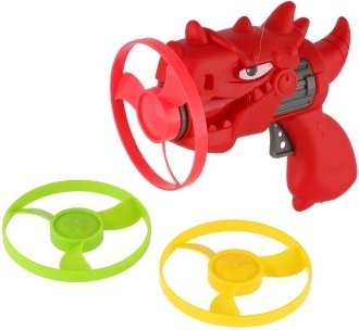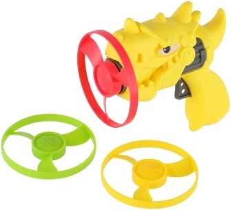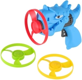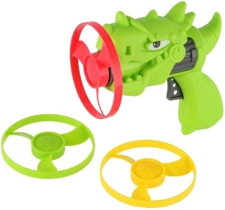 Priskrbite otrokom akcijsko zabavo z dinozavrsko iztrelitveno pištolo in tremi barvnimi rotorji. Igrača je lahka, trpežna in enostavna za uporabo – vstavite rotor v cev, potisnite/zaženite in opazujte, kako hitro se dvigne v višino. Zaradi živih barv so rotorji med letom dobro vidni.