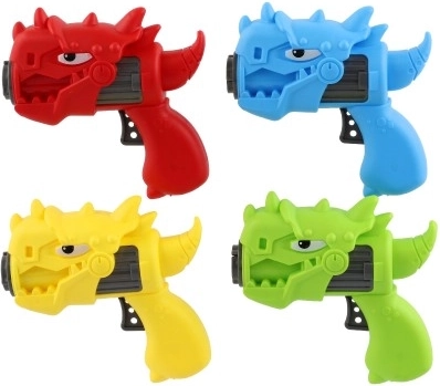 Dinozavrska iztrelitvena pištola s 3 rotorji. Enostavno upravljanje, barvni rotorji in odlična zabava na prostem in doma. Primerno od 3 let. Dimenzije 16×24×5 cm.