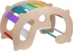 Montessori gugalnica 2 v 1 združuje privlačen dizajn s funkcionalnostjo. Zaradi svoje večnamenskosti pri otrocih spodbuja gibčnost in koordinacijo gibanja, kar je ključno za njihov razvoj.