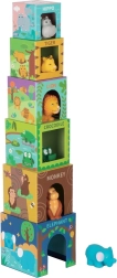 Ta komplet 6 kock omogoča vsakemu otroku odkrivanje eksotičnih živali iz daljnih krajev. Zaradi njihove priročnosti in izbranega materiala postanejo idealni spremljevalci na potovanjih in med kopanjem (pozor, karton ne sme priti v stik z vodo!).