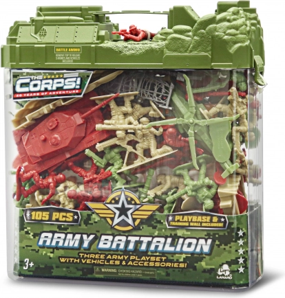 Vojaški set s 105 plastičnimi figuricami za zabavo in zbiranje. Idealno za ustvarjanje bojnih scen.