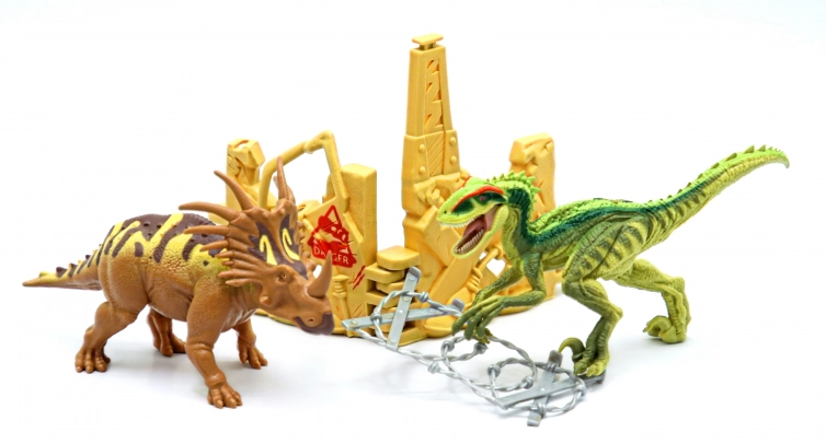 Potopite se v svet prazgodovinskih bitij z unikatnim setom dinozavrov Primalni Spopad! Izberite med Raptor VS Styracosaurus ali Parasaur VS Trimetrodon in ustvarite svojo lastno pustolovščino.