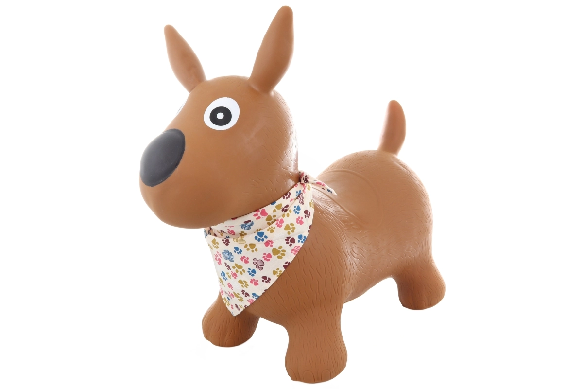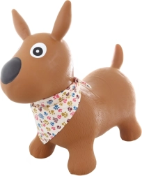 Gumijasto hopsadlo kužek s šalom, velikosti približno 54 × 47 × 25 cm. Višina sedeža približno 24 cm. Dimenzije embalaže približno 32,5 × 20 × 15 cm. Največja nosilnost je 50 kg. Del pakiranja je tudi tlačilka. Starost 1+