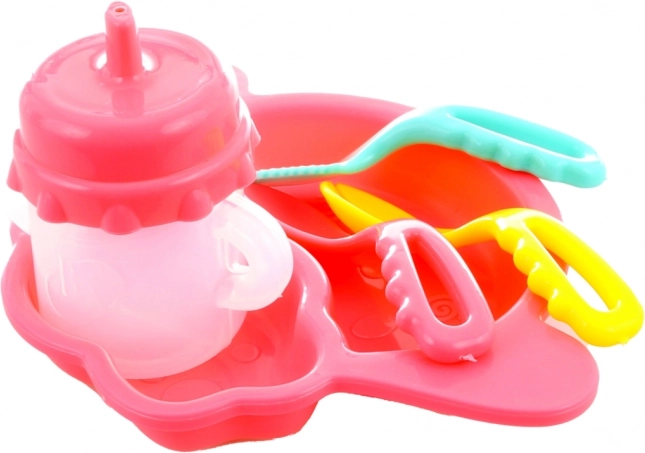 Duda, steklenička, krožniček in žličke zagotavljajo vse za hranjenje in pomirjanje dojenčice. Le odprite in začnite z igro.