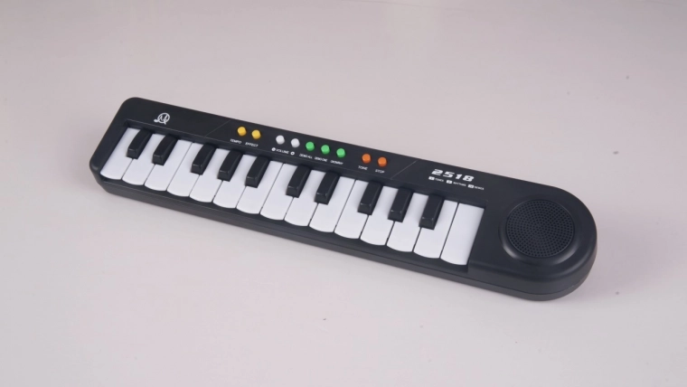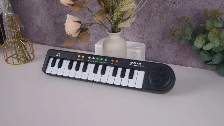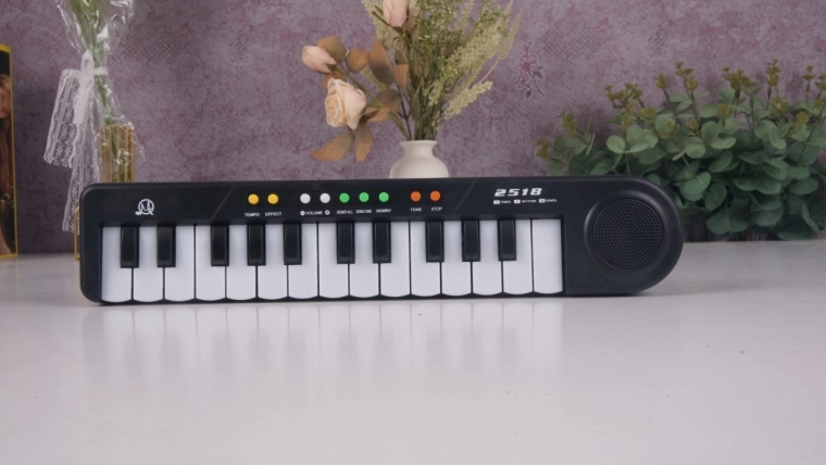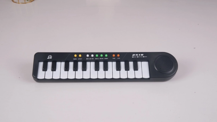 Podprite otroško ustvarjalnost in občutek za ritem z lahkim in prenosnim klavirjem MQ-2518. Ta preprost, a funkcionalen instrument je odlična izbira za začetnike: ponuja izbor zvokov, osem ritmov in 24 demo skladb, ki motivirajo otroke k raziskovanju glasbe.