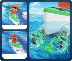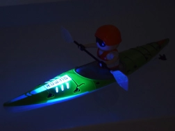 RC kajak z osvetlitvijo otrokom prinaša pristno vodno vožnjo. Figurica v oranžnem jopiču resnično »vesla« v ritmu gibanja, medtem ko živi LED učinki ustvarijo pravo vzdušje ob mraku. Enostavno upravljanje z daljinskim upravljalnikom omogoča hitro spreminjanje smeri in urjenje spretnosti na vodni gladini.
