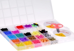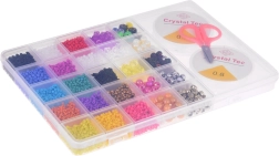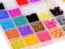 Ta bogato opremljen komplet je idealen za izdelavo zapestnic, ogrlic, obeskov in drugih dodatkov. Zahvaljujoč široki paleti odtenkov modre, turkizne, vijolične, rožnate, zelene in bele ter različnim oblikam kroglic boste ustvarili izvirne dodatke za vsako priložnost. Organizator s predelki ohranja vse pregledno – kroglice se ne mešajo, delo pa je hitro in udobno.