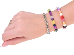 Široka paleta odtenkov in oblik, vključno s kroglicami s črkami, vam omogoča ustvarjanje edinstvenih zapestnic, ogrlic in obeskov povsem po vaši domišljiji.