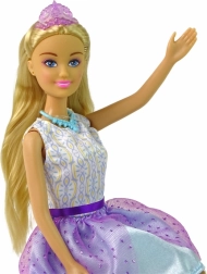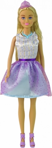 Odkrijte čar punčke Anlily v pravljičnem princeskinem slogu. Njeni bogati, rahlo valoviti blond lasje naravnost vabijo k ustvarjanju novih pričesk. Obleko z belim životcem in vijolično‑modrim krilom dopolnjuje bleščeča krona, ogrlica in visoki čevljički – vse popolno usklajeno za kraljevski videz.