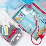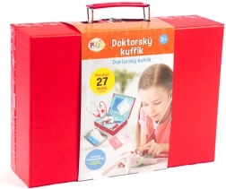 Zdravniški kovček vsebuje 27 delov zdravstvene opreme za realistično igranje vlog.