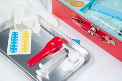 Kovček je zasnovan za lahko prenosljivost in shranjevanje vseh zdravstvenih orodij.