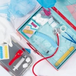 Velik zdravniški kovček za otroke prinaša ure zabave in izobraževanja preko igranja vlog zdravnikov. Del kompleta je široka paleta orodij, kot so funkcionalni stetoskop, injekcija, obliži in drugi. Ta barvit set je zasnovan tako, da razvija otrokovo domišljijo in empatijo.