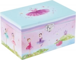 Baletka se elegantno vrti ob odprtju glasbene škatle, kar dodaja škatli neustavljiv čar.