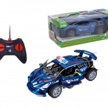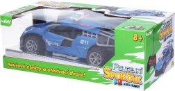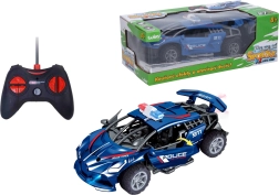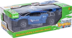 Uživajte v zabavni vožnji z našim policijskim RC avtom na daljinsko upravljanje. Ponuja svetlobne in dimne učinke, daljinsko odpiranje vrat in je pripravljen dodati akcijo vašim igram!