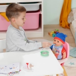Punčka BABY born Jonas 43 cm je kot prava – zna piti iz stekleničke, solziti prave solzice, z zasukom dudo zapirati in odpirati oči, lulati v pleničko in je pripravljena tudi na kopanje. S čarobnimi dodatki otroci spoznavajo vsakodnevne rituale nege dojenčka ter razvijajo empatijo in fino motoriko.